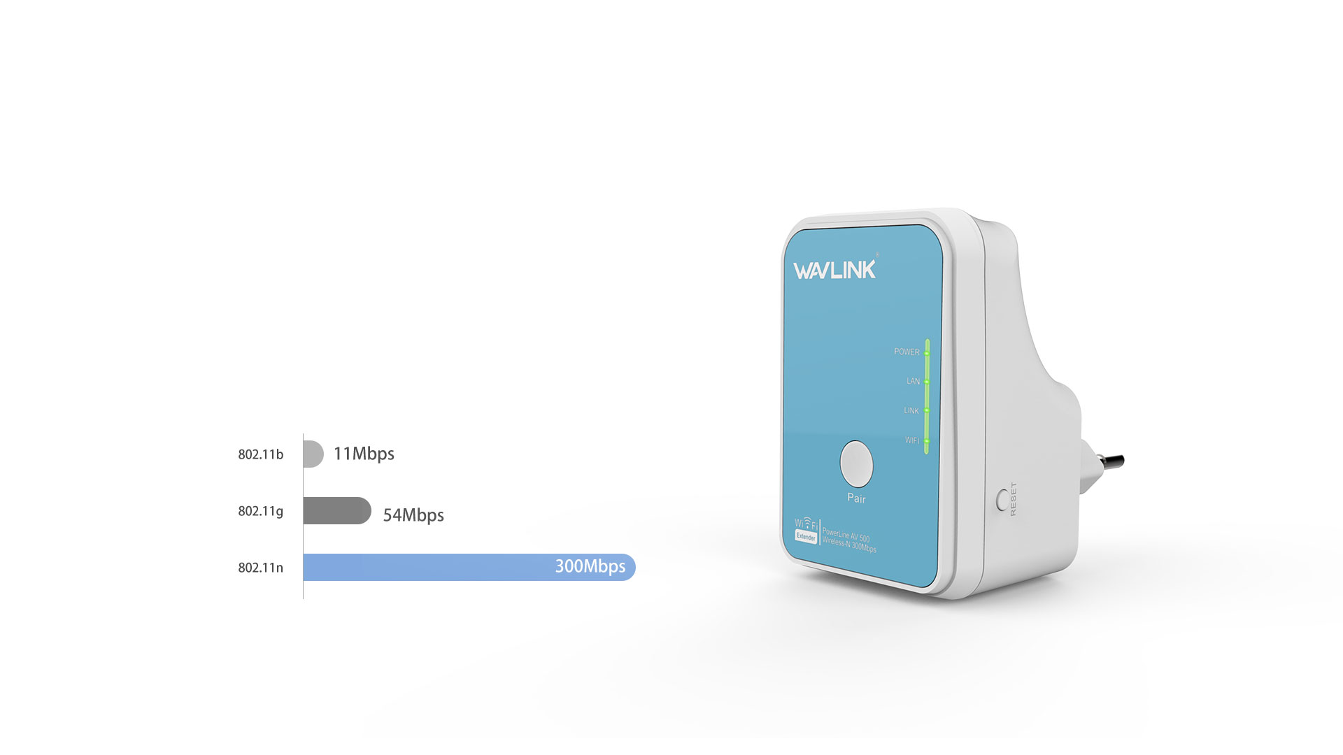 The 502WM powerline kit can be of a great help in extending your Wi-Fi signal to eliminate the possible dead zones, in the meantime, the primary adapter provides you the data transmission rate up to 300Mbps.