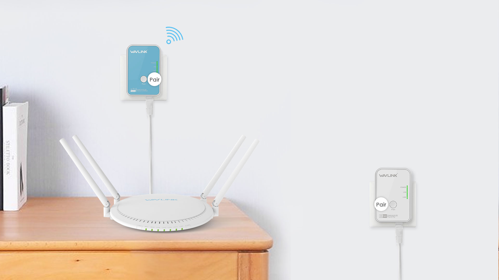 Set up the Powerline kit, you only need to plug in both of them respectively, press and hold their Pair buttons, once two adapters stop blinking, your extended network is established.