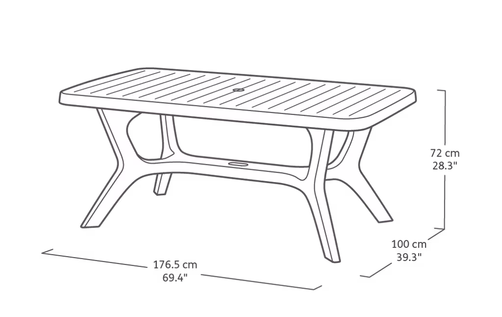 שולחן בלטימור במראה עץ טבעי הוא הפתרון המושלם לאירוח בגינה ובמרפסת או סתם לארוחת ערב משפחתית בערבי הקיץ החמים. השולחן רחב, חזק ויציב, מצויד בפתח לשמשייה וקל לניקוי בהעברת מטלית לחה.