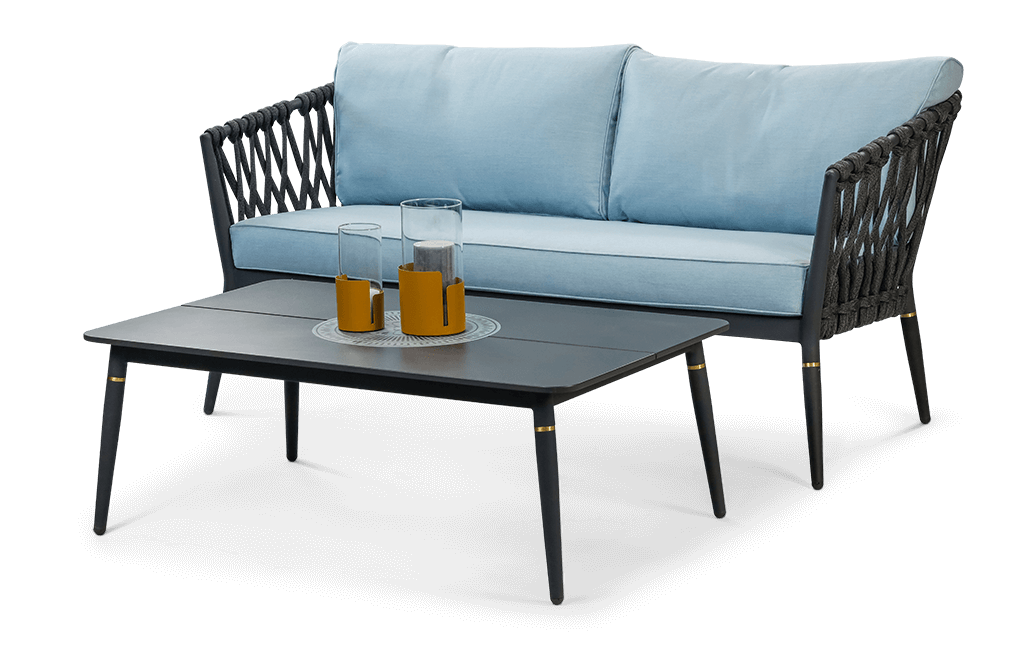 הספה היא חלק מסט אקווה, אך עומדת בפני עצמה כבחירה מושלמת לכל חלל – בין אם מדובר בגינה, במרפסת או בפינת ישיבה ביתית או משרדית.