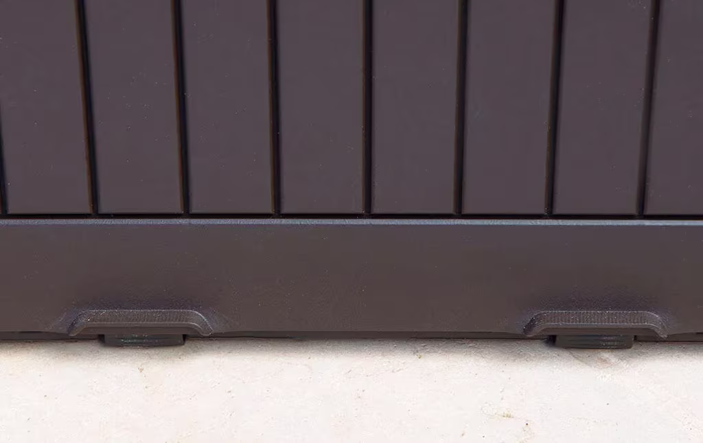 ארגז אחסון קומפי בנפח אחסון של 270 ל’יטר- את ארגז האחסון קומפי אפשר להרכיב תוך 5 דקות ללא צורך בכלים מיוחדים. הוא עשוי מחומרים מתקדמים, חזקים ועמידים לפגעי מזג האוויר לאורך זמן כך שהוא לא זקוק לתחזוקה. מתאים לאחסנת כריות לריהוט גן, כלי עבודה או אביזרים לגריל. ניתן להזיז אותו בקלות בזכות הגלגלים והידיות המובנות. ארגז האחסון קומפי קל מאוד להרכבה והוא אף ניתן לנעילה