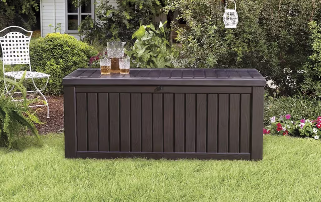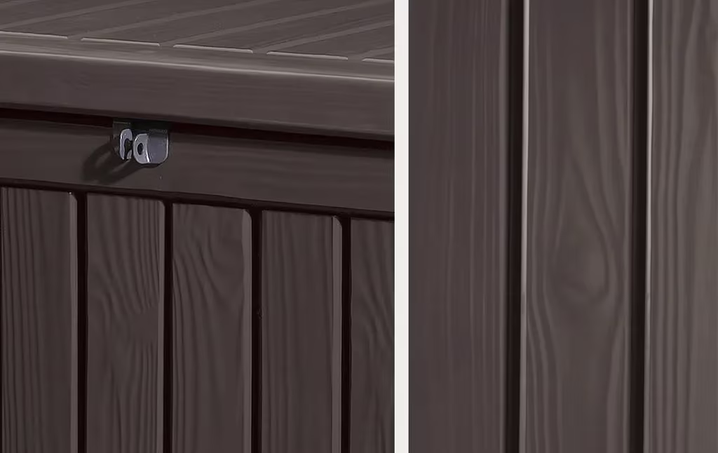 ארגז אחסון Rockwood בנפח אחסון של 570 ליטר – תוספת נהדרת לכל גינה עם מרקם עץ מרהיב. מושלם לאחסון פריטים גדולים בקלות וביעילות הודות למנגנון פתיחה אוטומטי, מספק הגנה מלאה מפני פגעי מזג האוויר הודות למבנה עמיד ואיכותי. מתאים לישיבה נוחה לשני מבוגרים.