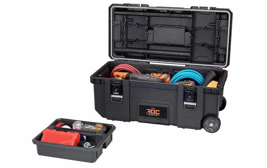 ארגז כלים נייד 28″ מסדרת ROC- זהו הארגז האידיאלי לאנשי מקצוע. מותאם במיוחד לשינוע כלי העבודה בינוניים וגדולים בסביבות שונות הודות לגלגלים ולידית הנשלפת. זהו ארגז הכלים גדול שתואם למערכת כלים מודולרית ניידת , כולל מגש נשלף, עמיד בפני מים . בנוסף, ניתן לחבר בקלות למערכת המודולרית המקצועית ROC.