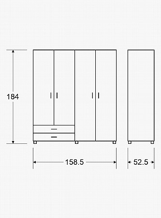 • אורך: 159 cm x רוחב: 53 cm x גובה: 184 cm