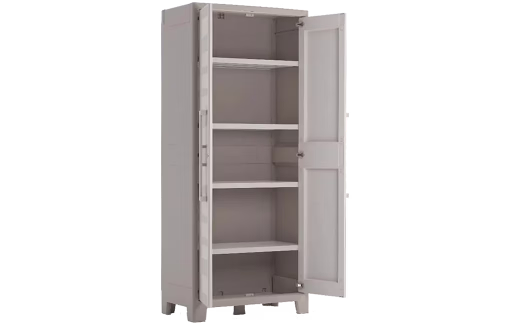 ארון שירות גוליבר גבוה הוא פתרון אחסון מעוצב, מודולרי ויציב שעוזר לשמור על הסדר והניקיון בבית, בגינה או במרפסת. הארון עשוי מחומר מתקדם, חזק ועמיד בפני פגעי מזג האוויר לאורך זמן, שומר על התכולה יבשה ומאווררת לכל אורך השנה, מצויד במתקן למנעול להרחקת סקרנים וכולל 4 מדפים שלכל אחד מהם כושר נשיאה של 30 ק”ג שאותם אפשר לקבוע בגבהים שונים לפי הצורך.