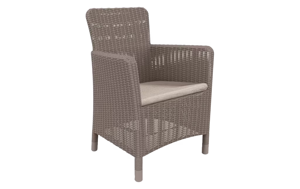כיסא טרנטון האיכותי מעוצב ונוח במיוחד ונותן תחושה של ישיבה מרווחת על כורסה בזכות הגב הגבוה, משענות הידיים והכרית. עמיד בפני פגעי מזג האוויר ומשתלב נהדר עם מגוון שולחנות.