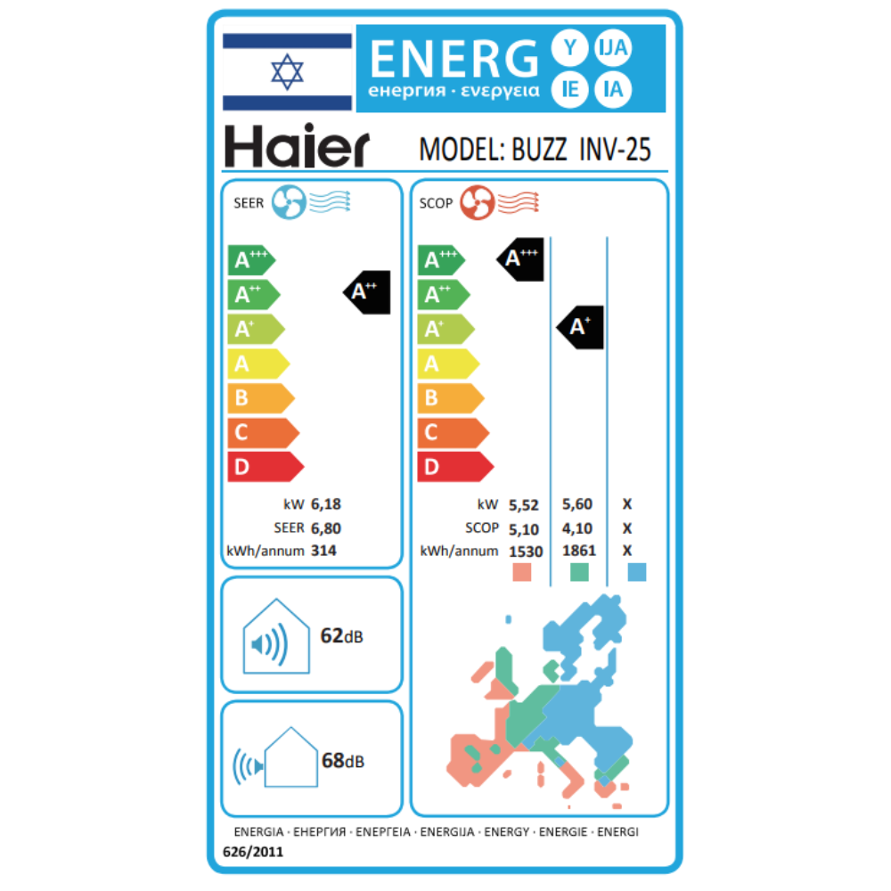 ✔ טכנולוגיית אינוורטר עם פעולה חסכונית בחשבון החשמל