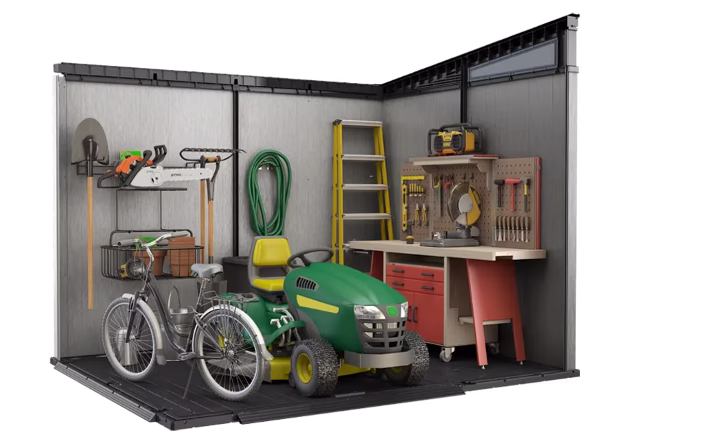 מחסן גינה ארטיזן 9×7 משדרג את אחסון החוץ בזכות עיצוב עכשווי ופרקטי המשתלב היטב בגינה ובחצר. קירות המחסן ארטיזן עשויים מחומר DUOTECH™ המתקדם עם דופן כפולה בחיזוק פלדה וגג שיכול לשאת משקל של עד ל־200 ק”ג/מ”ר. הקירות של מחסני ארטיזן עשויים מחומר DUOTECH™ מתקדם ועמיד בפני פגעי מזג האוויר, אפשר לצבוע אותם בקלות ולקדוח בהם כדי לתלות מדפים, כלים וציוד נוסף לפי הצורך. למחסן דלתות כפולות, חלונות המכניסים אור טבעי ורצפה חזקה לאחסנת כלים וציוד כבדים כמו מכסחת דשא, אופניים ואפילו טרקטורון ללא חשש שיירטבו או יתלכלכו בבוץ.