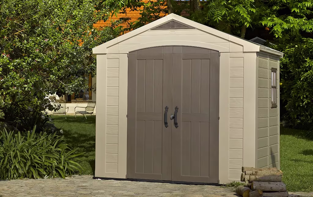 מחסן גינה פקטור 8×6 פתרון אחסון מעוצב למרפסת ולגינה. קירות המחסן עשויים מחומר מתקדם ועמיד בפני פגעי מזג האוויר לאורך זמן שלא דורש תחזוקה, מגיע עם שני מדפים ומצויד בדלת כפולה עם מתקן למנעול לגישה נוחה, רצפה חזקה לאחסנת ציוד וחפצים כבדים ללא חשש שיירטבו או יתלכלכו בבוץ, חלון וחלון גג המכניסים או טבעי בשפע, פתחי אוורור לשמירה על תכולת המחסן יבשה ומאווררת לאורך כל השנה ותקרה גבוהה תקרה גבוהה לכניסה ויציאה בנוחות מבלי להתכופף.