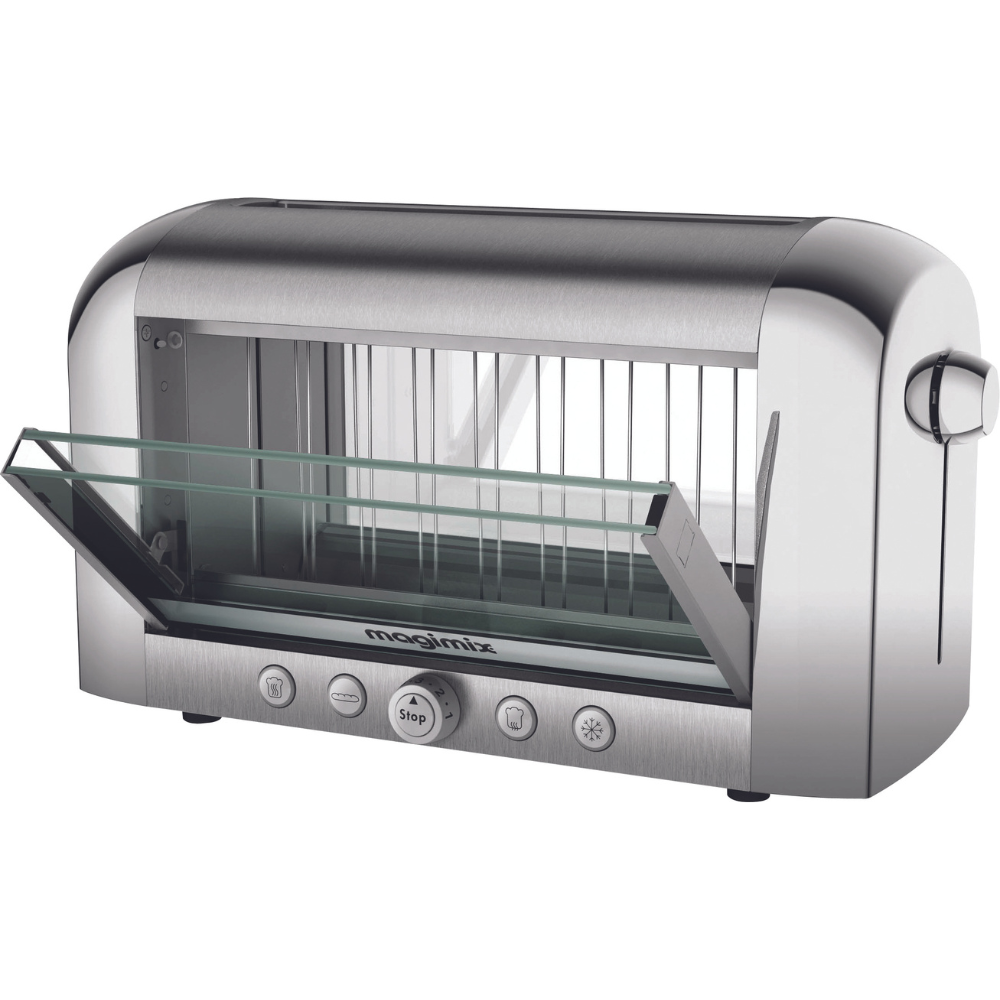 מצנם שקוף בעיצוב יפהפה מדגם GT10V של Magimix, בעל חלון זכוכית קשיחה ומבודדת, פתח רחב להכנת מבחר סוגי לחמים ומאפים, גוף חימום איכותי מקוורץ העמיד לאורך זמן, בקרת השחמה ושליטה מדוייקת בזמן ההכנה עם כפתור המאפשר מגוון אופצייה עשייה בפשטות ויעילות מרבית!