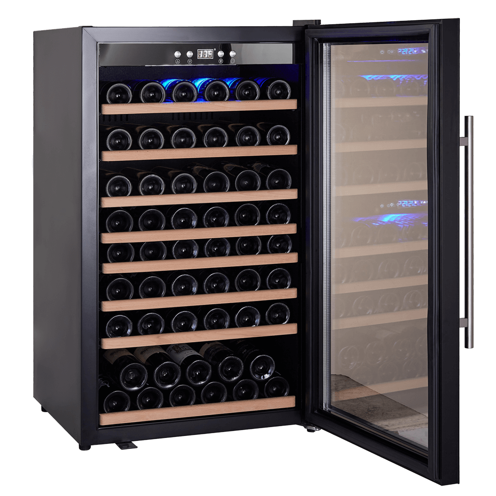 מקרר יין לאחסון של עד 75 בקבוקי יין אדום או לבן.