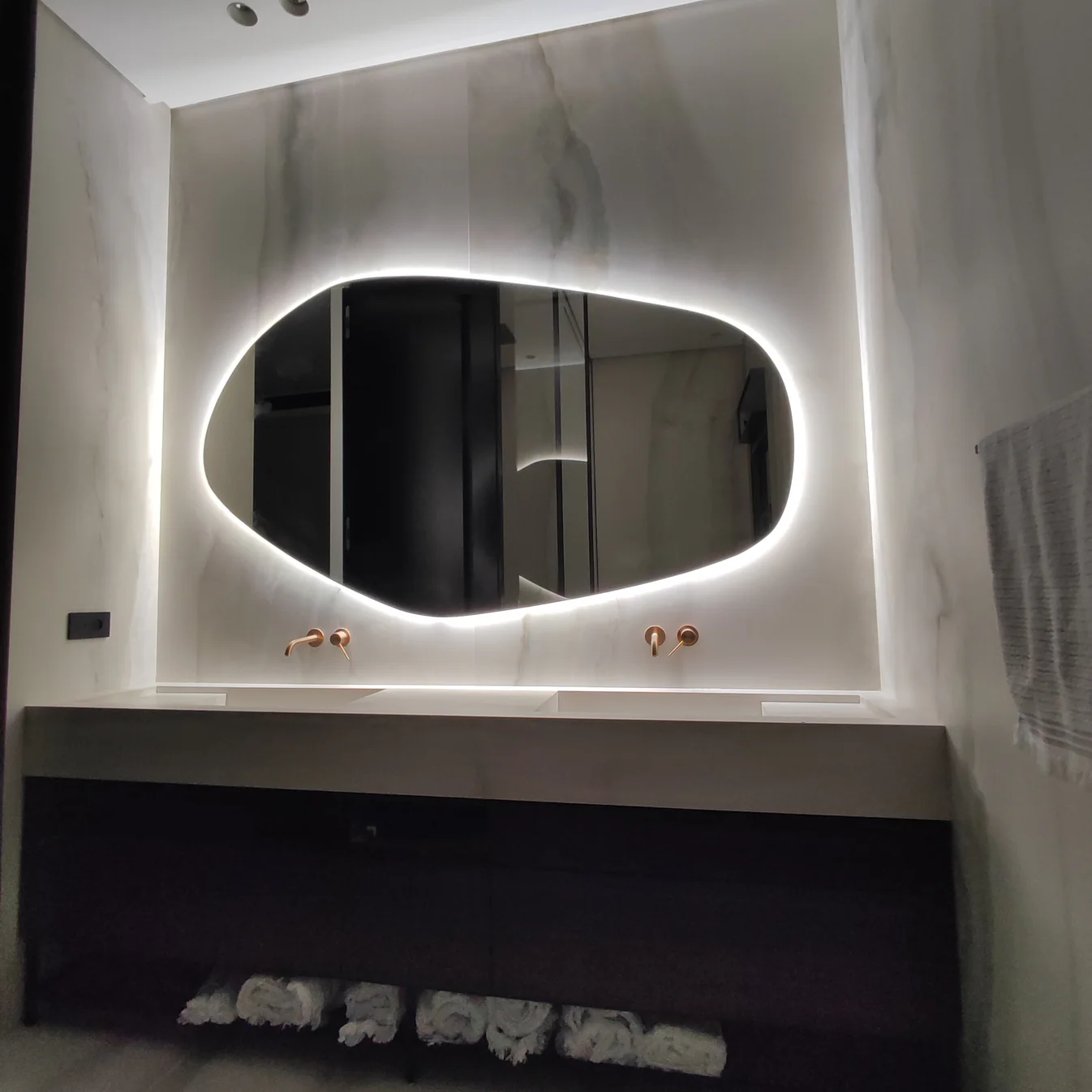 המראות המוארות שלנו עשויות מחומרים איכותיים כגון מראות AGC מתוצרת בלגיה מלוטשות במכונת CNC, פרספקס יצוק לבניית גופי תאורה ידידותיים לסביבה, פסי לד COB עם תאורה רציפה.