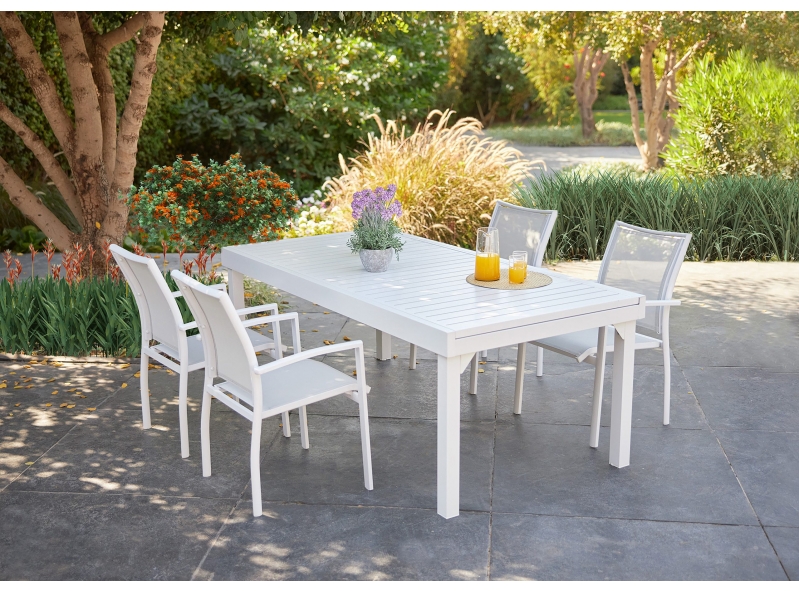 השולחן עשוי רצועות אלומיניום למראה יוקרתי ונקי
