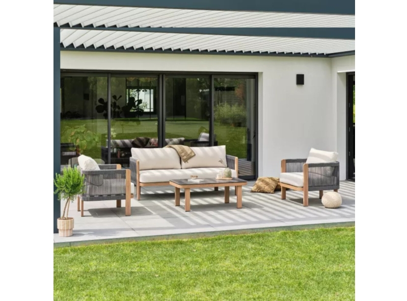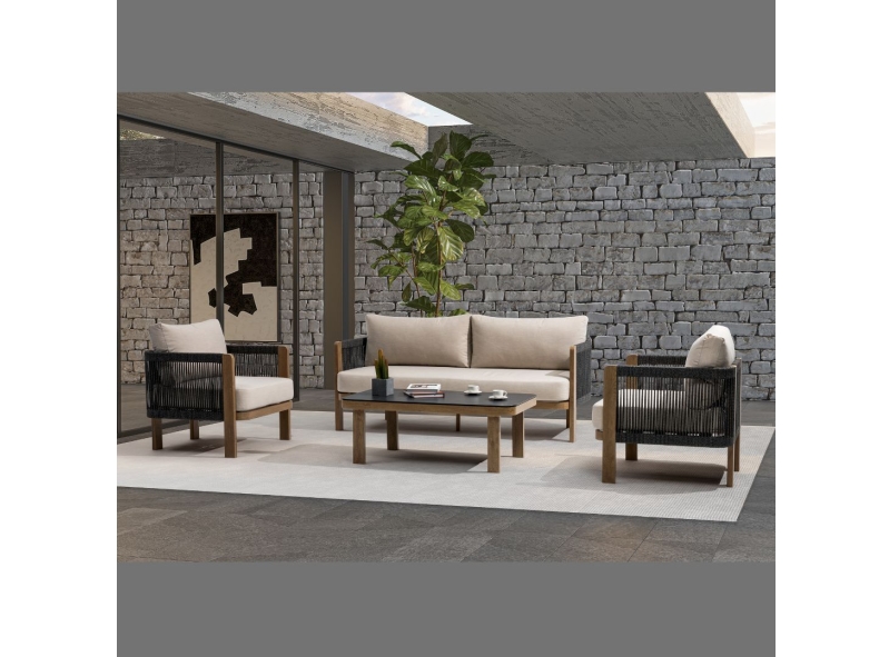 סט ישיבה דמוי עץ בשילוב חבלים דגם לאונרדו