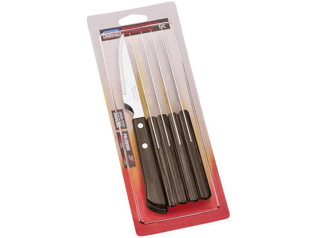 סט של 6 סכיני מטבח ספרדיות עם ידיות פוליווד עמידות בצבע אספרסו. אידיאלי לשפים ולבישול ביתי, מתאים לחיתוך, פריסה ושימוש יומיומי במטבח.