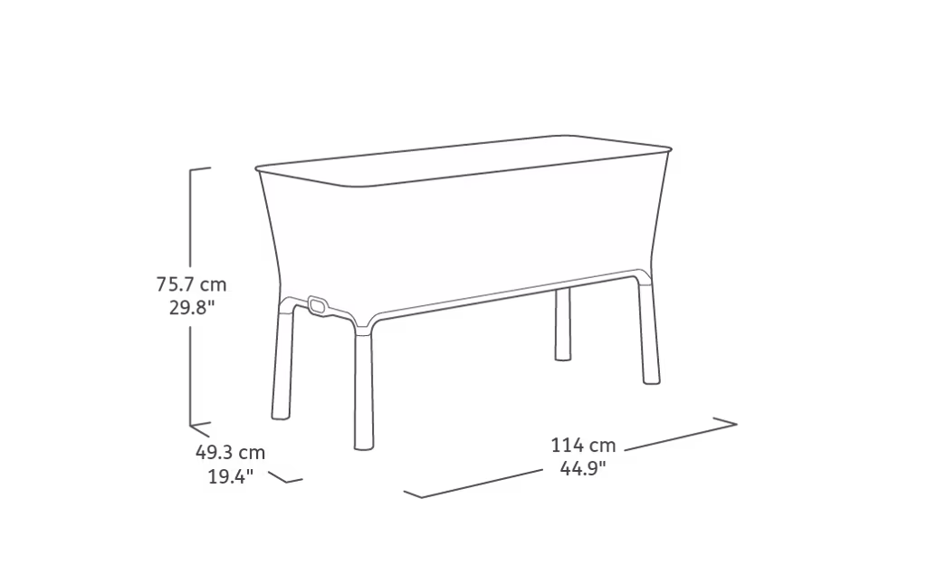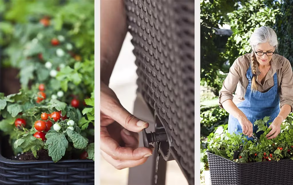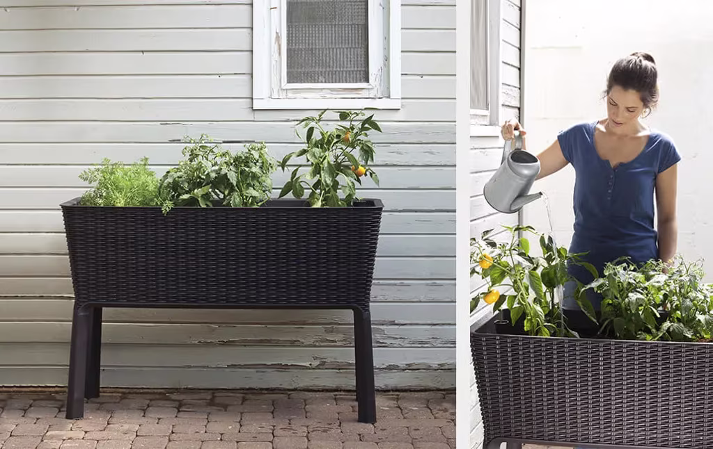 ערוגה מוגבהת ומעוצבת ארגונומית, קלה לשימוש וגדולה במיוחד בנפח של 120 ליטר, מאפשרת לטפל בצמחים בלי להתכופף ובלי להתאמץ. מתאימה לשימוש בתוך הבית ובחוץ, ומעוצבת בטקסטורת ראטן מרהיבה.מתאימה לגידול ירקות, צמחי תבלין וצמחי נוי בבית או בגינה.הערוגה כוללת מערכת השקיה מובנית, מאגר מים תחתון ששומר על לחות האדמה והשורשים, מד השקיית יתר וברז ניקוז להשגחה קלה על מפלס המים.