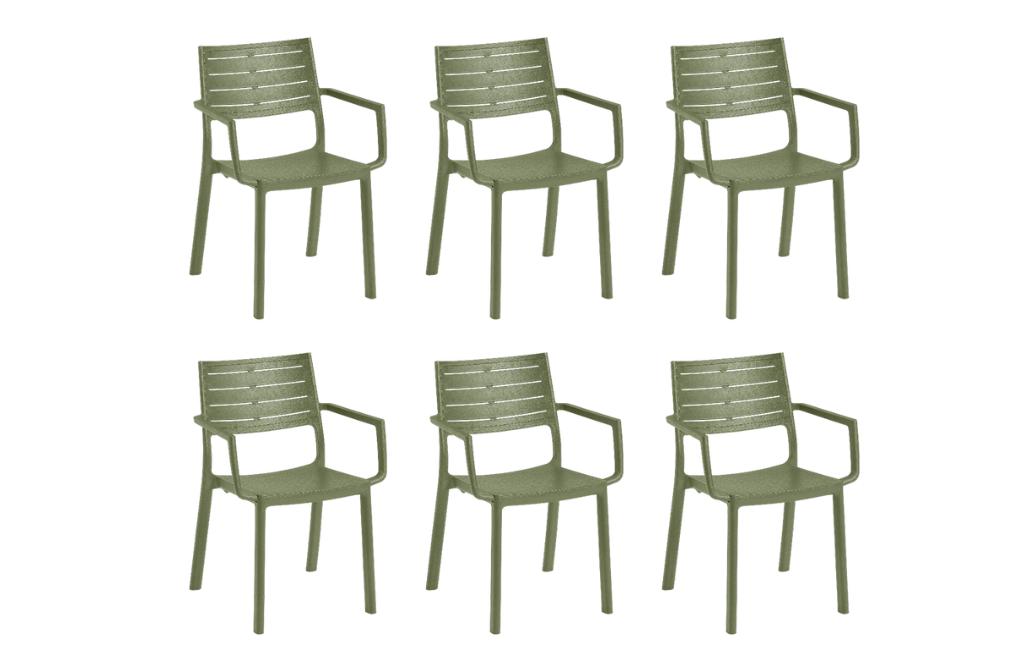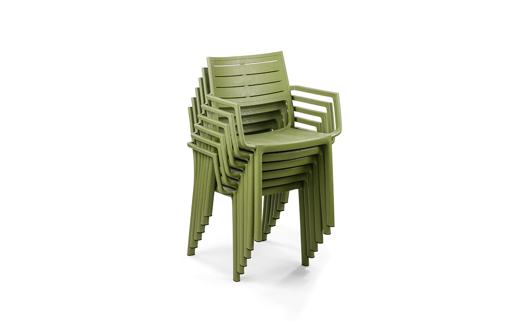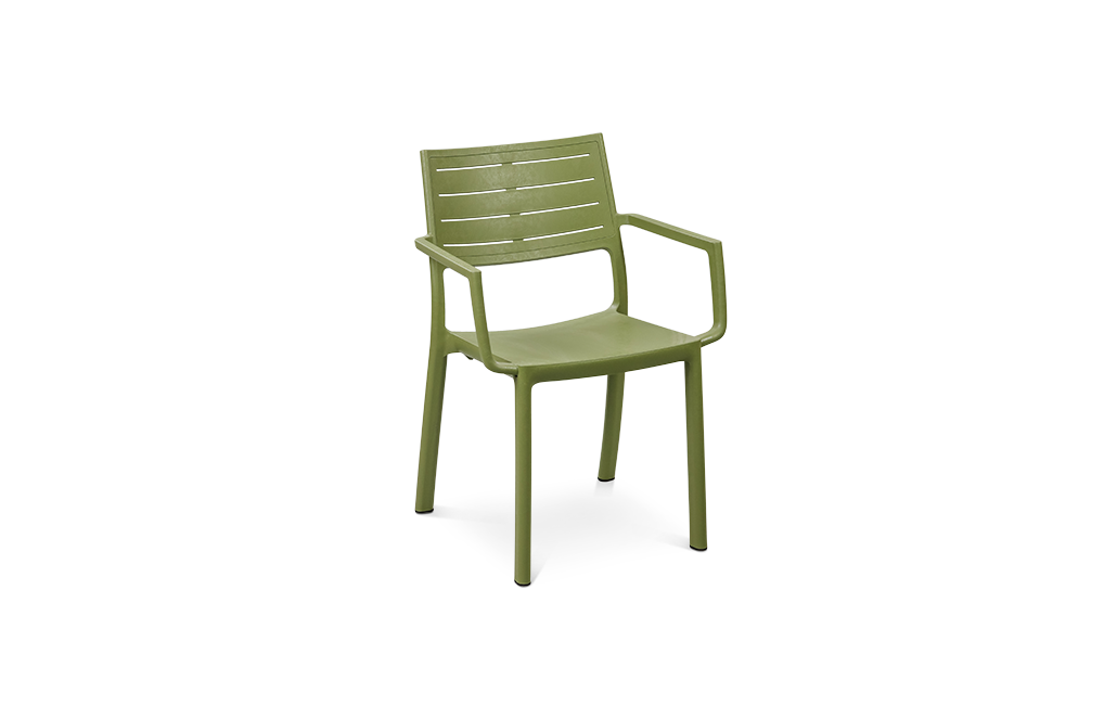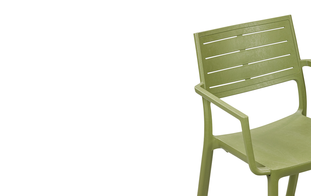 כיסא מטליין עשוי מחומר מתקדם, קל משקל, חזק ויציב במראה ותחושה של ברזל יצוק, עם מושב נוח, משענות ידיים מרווחות ובעיצוב מחוספס, נקי ועל־זמני שמוסיף נגיעות עיצוב תעשייתי לפינת האוכל בגינה.